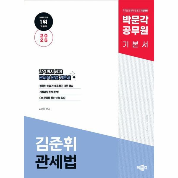 『2025 박문각 공무원 김준휘 관세법 기본서』는 7·9급 관세직 공무원, 관세사 시험 대비를 위해 방대한 양을 압축 구성한 관세법 기본서입니다.