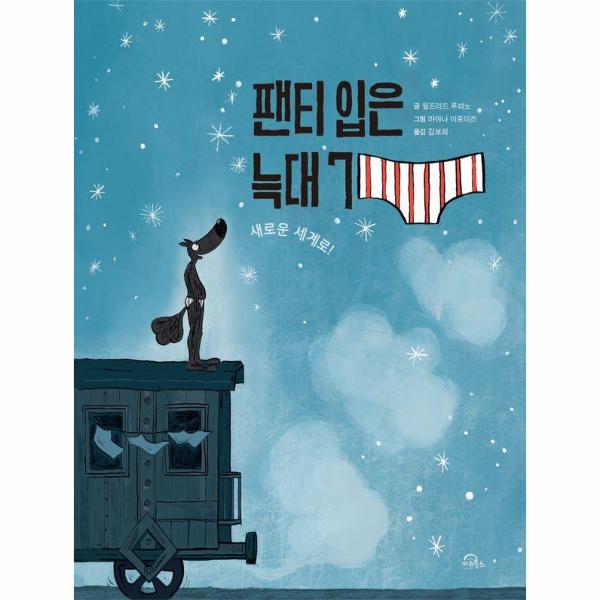 지루하지만 반복되는 편안한 일상은 낯선 세상으로 향하는 발걸음을 가로막습니다. 하지만 자리를 박차고 일어나 발을 조금만 내딛으면 우리를 기다리던 전혀 다른 세상이 펼쳐집니다. 못을 사러 가던 늑대는 경쾌한 음악 소리를 따라가다 ‘다른 곳’으로 향하던 뱃사공 개구리들을 발견합니다. 함께 가겠냐는 제안에 덜컥 겁이 났지만 두려움에 떠는 마음속 콩알들을 땅에 두고 용감하게 뗏목에 오릅니다. 태어나서 처음으로 팬티 입은 늑대는 안락한 숲을 떠나 완전히 다른 세계로 향합니다.