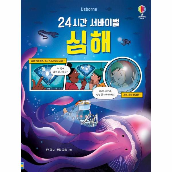 『24시간 서바이벌 심해』에서는 첨단 잠수정에 탑승한 해양 생물학자 ‘준’을 따라 심해 탐사 과정의 24시간을 체험해요. 안전을 위해 잠수정을 정비하고, 깊은 바닷속에서 다양한 심해 생물을 관찰하고, 새로운 발견을 기대하며 표본을 수집하기도 하지요. 잠수정의 구조, 탑승할 때 준비할 것 등 해양 조사선에서 일어나는 일과 바다의 깊이, 심해의 생태, 심해에 사는 생물 등 다양한 심해 지식을 알아볼 수 있어요. 바다에서의 일상을 생생하게 재현한 만화를 술술 읽는 사이, 심해 과학 지식을 쏙쏙 이해할 수 있을 거예요.