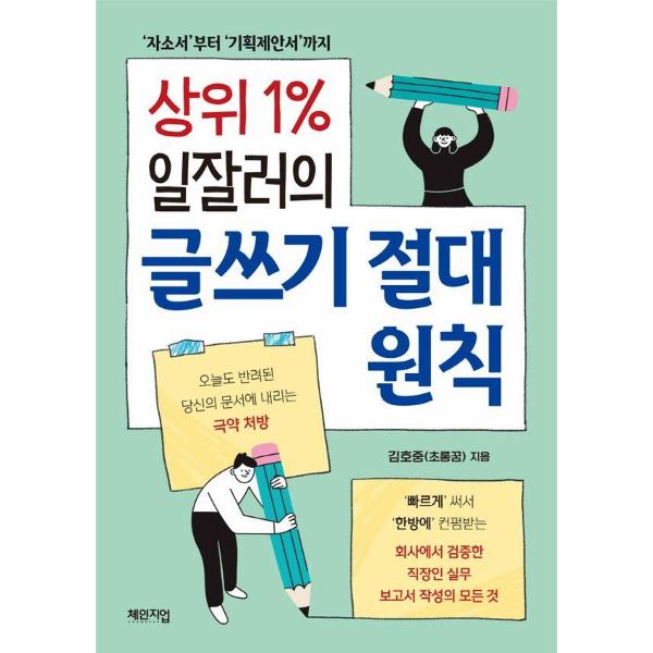 『상위 1% 일잘러의 글쓰기 절대 원칙』은 그 ‘기술’에 대해 가장 섬세하게 다룬 비법서이다. 저자가 대학 강단에서 학생들과 소통하며 자기소개서 컨설팅을 진행하고, 일선에서 직접 보고서를 제출하고 검토하며 파악한 글쓰기 원칙은 주관적이거나 함축적이지 않다. 다만 명백하고 명료하다. 또한, 저자가 직접 작성한 보고서 예시들과 다양하고 재미난 실생활 사례들이 이론 설명을 넘어 독자의 실질적인 이해 수준을 끌어올린다.