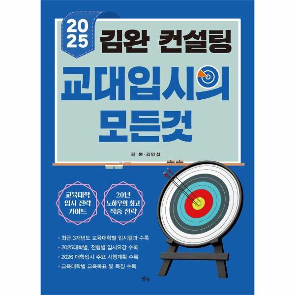 최근 3개년도 교육대학별 입시결과 수록, 2025 대학별, 전형별 입시요강 수록, 2026 대학별 입학전형 시행계획 수록, 교육대학별 교육목표 및 특징 수록