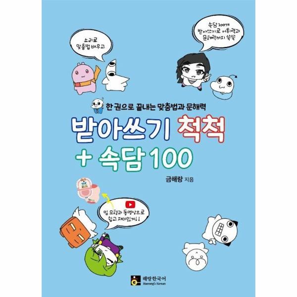 해랑 샘이 받아쓰기할 문장을 불러 주고, 속담 100개 애니메이션 제공