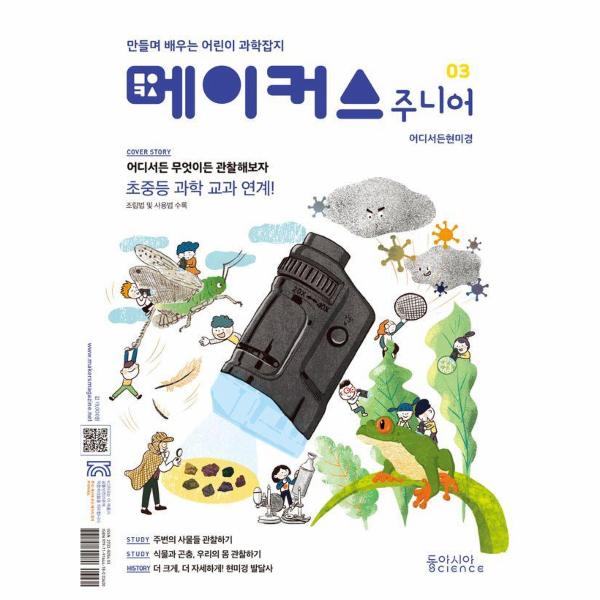 학생들에게 사물을 관찰하는 습관을 길러주세요! 만들며 배우는 어린이 과학 키트 잡지 《메이커스 주니어》 시리즈, 그 세 번째 책은 《메이커스 주니어 03 어디서든현미경》입니다.