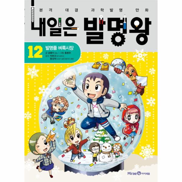 〈내일은 발명왕〉 12권 ‘발명품 벼룩시장’ 편에서는 환기 터널을 활용한 ‘빨래 바구니’, 빛의 반사와 거울을 이용한 ‘다종 만화경’, 자석을 이용한 ‘자석 프라이팬 손잡이’ 등 여러 가지 발명품을 만드는 과정을 통해 자연스럽게 과학 이론을 접할 수 있도록 구성하였습니다.