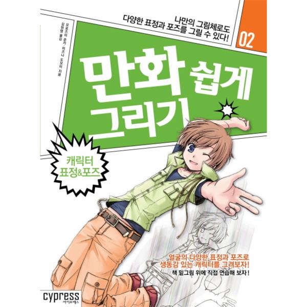 “얼굴 표정과 포즈로 캐릭터를 표현하자!”얼굴 표정과 몸동작은 매우 밀접한 관계에 있다. 물론 인간은 표정만으로도 다양한 감정을 표현할 수 있지만, 그와 동시에 손짓이나 몸짓이 더해지면 그 감정이 더욱 풍성하게 전달된다. 즉, 얼굴 표정과 포즈가 만나면 감정 표현이 무한대로 늘어나는 셈이다. 이 책은 기쁨, 슬픔, 분노 등 20가지 얼굴 표정을 소개하고 있다. 또한 기본 포즈는 물론 승부, 전투, 연애, 공포, 광기 등 다양한 상황에서의 50여 가지 포즈도 담고 있다. 따라서 여러 가지 얼굴 표정과 포즈를 함께 그릴 수 있도록 구성하였다. 특히 책 속에 수록된 밑그림과 형태 위에 직접 따라 그릴 수 있으며 자신의 그림체로도 그릴 수 있다는 점이 특징이다. 그리고 마지막 파트에서는 귀여운 데포르메 그리기도 소개하고 있다. 이 책을 통해 균형이 잘 잡힌 포즈와 풍부한 얼굴 표정을 연습하면 자기만의 매력적인 캐릭터를 완성할 수 있을 것이다.