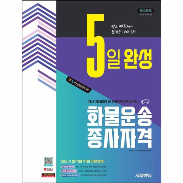 이 책은 5일 계획 학습으로 핵심이론만을 파악하여 실전에 대비할 수 있도록 집필하여 수험생들의 수고를 덜어주는 데 초점을 맞추었습니다. 또한 자주 출제되는 유형의 문제를 엄선하여 수록하였습니다. 시대에듀가 준비한 ‘5일 완성 화물운송종사자격’으로 초단기 합격하시기 바랍니다.