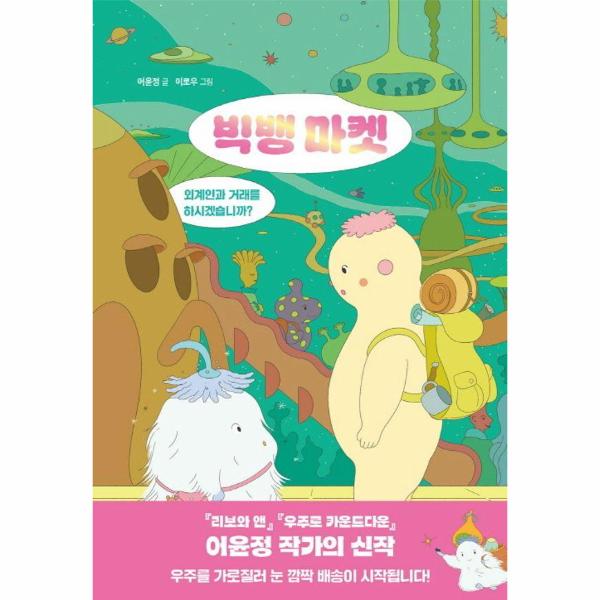 우주, 가족, 소통, 다양성, 꿈을 다룬 동화로 어린이 문학상을 다수 수상한 어윤정 작가가 이번에는 아예 작정하고 지구인과 외계인의 교류 에피소드를 풀어냈다. “지구인과 외계인이 만나서 물물 거래를 하면 어떨까?”라는 질문에서 시작된 『빅뱅 마켓』은 얼핏 보면 황당무계하고 어처구니없는 이야기다. 그래서일까, 어윤정 작가의 동화는 어린이들의 호기심을 더욱더 끌어낸다.