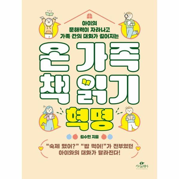 18년 차 현직 초등 교사이자 두 아이의 엄마인 김수현 선생님은 ‘온 가족 책 읽기’라는 새로운 책 읽기 방식을 제안한다. ‘온 가족 책 읽기’란 말 그대로 부모와 아이가 함께 한 권의 책을 읽고 책에 관한 대화를 나누는 활동을 진행하는 것을 가리킨다. 한 달에 한 권, 온전히 하나의 책을 집중해서 읽기 때문에 아이는 자연스럽게 정독하는 훈련을 할 수 있고, 책 속 인물과 사건, 줄거리, 배경 등을 탐구하며 다양한 생각과 의견을 나누기 때문에, 이해력과 문해력은 물론 발표와 토론 능력까지 기를 수 있다. 그뿐만 아니라 온 가족이 함께 하나의 공통 주제를 가지고 충분히 이야기를 나누게 되면서, 가족 간의 대화가 깊어지고 관계가 좋아지며 온 가족이 행복해지는 특별한 경험이 가능해진다.