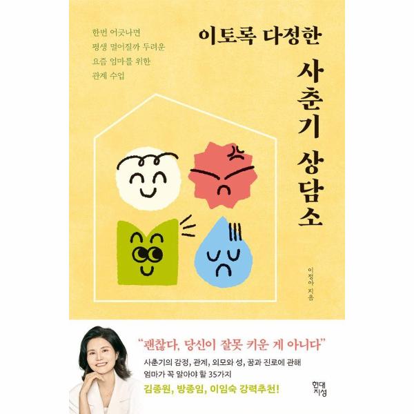 12년 동안 유치원 교사와 방과후교실 교사로 현장 경험을 쌓으면서, 깊어진 교육에 대한 열정으로 교육학 석·박사를 마친 후 강단에서 학생들을 가르치고 있는 이정아 교수가 『이토록 다정한 사춘기 상담소』를 펴냈다. 이 책은 사춘기 아이의 거친 말과 행동으로 상처받은 엄마들을 위로하고 흔들린 양육 자신감을 되찾아주는 ‘친절한 사춘기 안내서’다.
