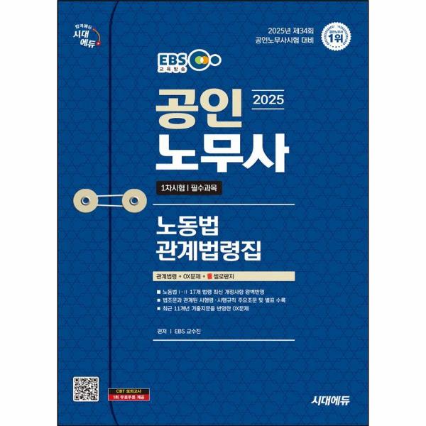 2025 시대에듀 EBS 공인노무사 노동법 관계법령집(기출지문 OX은 집중적인 법령학습을 필요로 하는 수험생들을 위한 도서로, 공인노무사시험 준비에 다양하게 활용할 수 있도록 노동법 관계법령을 체계적으로 정리하여 수록하였고, 셀로판지 필터를 적용하여 효율적인 암기학습이 가능하도록 구성하였으며, 보다 깊이 있는 학습을 원하는 수험생들을 위한 동영상강의(유료를 준비하였습니다. 시대에듀의 공인노무사 시리즈와 함께 합격의 기쁨을 누리시길 바랍니다.