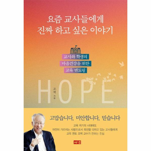 40여 년간 지구 110바퀴를 돌며 국내외 교육현장을 경험하고, 수많은 교육정책가, 교사, 학부모들을 만나며 21세기 교육 리더십을 실천해 오고 있는 조벽 교수. 교육정책과 교수법에 관한 세계적인 전문가이자 최고의 교육 멘토인 그는 다시 교사로서 자긍심을 일깨우고, 의미 있는 교사로서 살아가기 위한 지혜를『요즘 교사들에게 진짜 하고 싶은 이야기』에서 전하고자 한다. 변화한 시대를 반영한 교육 비전을 세우고, 교사의 역할과 학습의 개념을 재정의하고, 교실에서 실천해야 할 해법을 제시한다. 이 책은 저자가 오랫동안 교육자들에게 멘토링하듯 교육 매체에 연재한 칼럼을 바탕으로 수정하고 보충하여 새롭게 엮었다.
