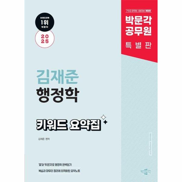 많은 수험생이 행정학 학습 분량에 압도되어 어려움을 겪고 있다. 이러한 어려움을 해소하고자 <김재준 행정학 키워드 요약집>이 출간되었다. 이론 복습과 마무리 정리에 최적화된 본서의 특징은 다음과 같다.