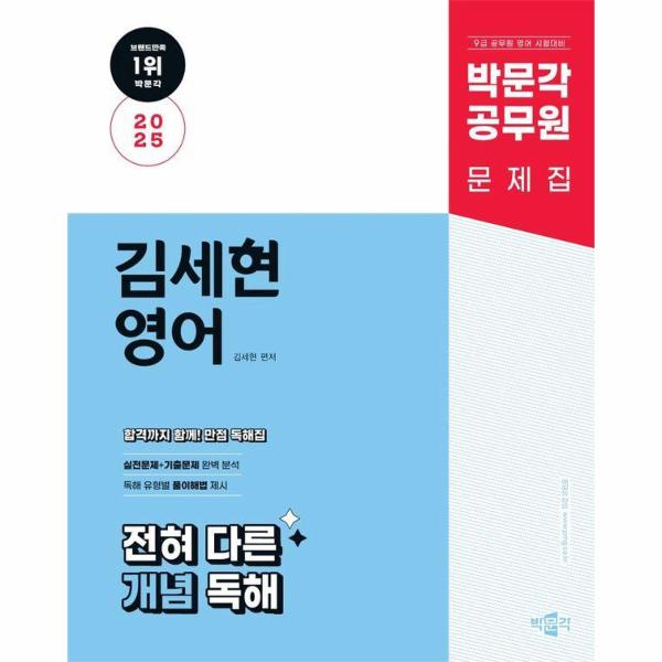 『2025 박문각 공무원 김세현 영어 전혀 다른 개념 독해』는 9급 공무원 영어 시험대비 독해집으로 독해 실전문제와 기출문제가 같이 수록되어 있는 문제집이다. 공무원 영어 시험의 기출 경향을 완벽 반영해서 꼭 시험에 나올 것에만 집중하였고 2025 출제 기조 전환 예시문제에 맞게 신유형 문제 또한 넣어 2025년 시험대비를 단단히 할 수 있도록 만들었다. 본문 해설 지문에 정답에 대한 단서들을 표시하여 좀 더 직관적으로 정답을 이해할 수 있도록 하였다. 부디 본서를 활용해 시험을 준비하는 모든 수험생이 최종 합격의 기쁨까지 누리기 바란다.