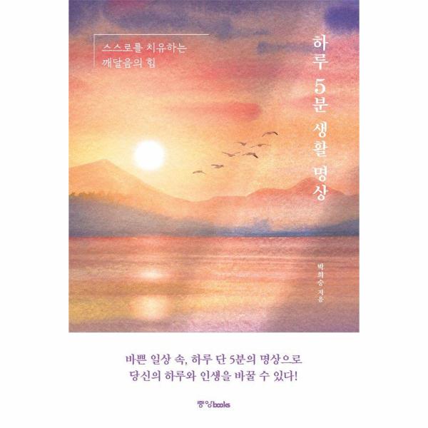 약 30여 년 동안 마음챙김 공부를 해온 명상 지도자인 저자는 책에서 ‘치유 명상’을 포함해 내면의 힘을 키우고 인생의 진리를 깨쳐 행복으로 향하는 ‘깨달음 명상’의 방법을 안내한다. 깨달음 명상이란, 스트레스와 우울 등 일상의 괴로움을 일으키는 일체의 번뇌망상을 비우고 비워서 청정한 즐거움, 영원한 행복을 누리게 하는 불교의 가르침이다. 불교의 깨달음 명상은 ‘내가 있다’라는 스스로의 존재에 대한 집착과 망상을 비워내는 과정이며, 이를 통해 생로병사의 괴로움을 완전히 없애는 영원한 행복의 길이다. 저자는 평소 마음이 괴롭더라도 알코올이나 약물에 의존하지 않고, 괴로운 마음과 인생을 해방시키고 행복하게 하는 방법을 바로 명상에서 찾을 수 있다고 강조한다. 저자는 명상에 관심이 있는 사람이라면 치유 명상이나 깨달음 명상두 가지 방법 모두 좋은 명상법이며, 마음이 끌리는 인연에 따라 선택하면 좋다고 권한다. 중요한 것은 하루 단 5분이라도 매일 습관처럼 명상을 할 수 있어야 한다는 것이다.