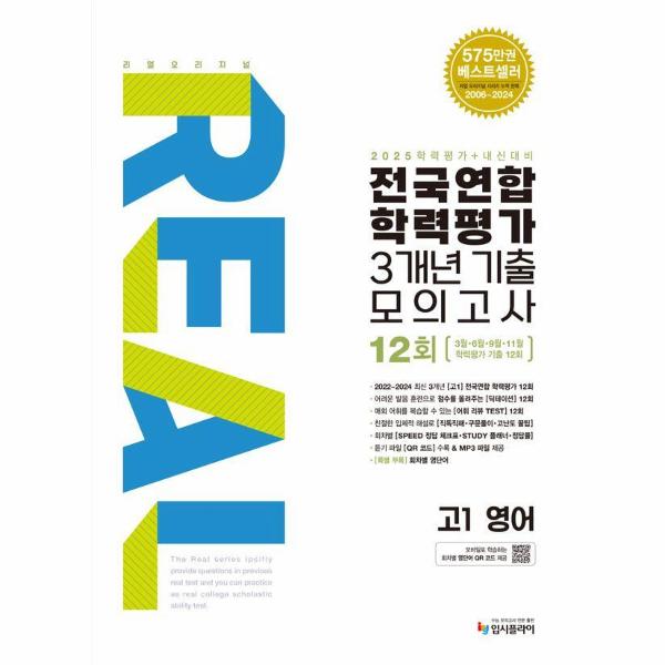 2022~2024년 최신 3개년 [전국연합학력평가] 기출 문제 12회를 수록했습니다. 수능 모의고사 형태로 각 시도 교육청이 주관해 연간 총 4회 시행되는 고1 학력평가와 기출 문제를 변형하는 학교가 많아 고1 학교시험 [중간, 기말고사]까지 대비 할 수 있습니다.
