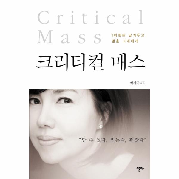대한민국의 대표적인 인터뷰어로서 수많은 사람들을 인터뷰해온 앵커 백지연이 놀라운 성취와 성공의 비밀을 찾아 나섰다. 그녀는 한 편의 드라마 같은 감동이 있는 인터뷰 쇼 〈백지연의 피플 인사이드〉에서 지난 2년여 간 100여 명의 삶과 지혜를 경청해왔다. 이 책 《크리티컬 매스》는 그들의 이야기를 종횡으로 가로지르며 지혜의 정수를 온전히 담았다. 그들의 평균 나이 40세, 100명 정도를 만났으니 4천 년의 선물이 독자 여러분을 기다리고 있는 셈이다.