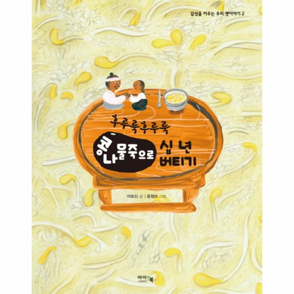 《후루룩후루룩 콩나물죽으로 십 년 버티기》는 한번 뱉은 말은 꼭 지키는 부부의 이야기예요. 그들이 한 약속은 하루 세 끼, 그것도 십 년씩이나 콩나물죽을 먹으며 자식들에게 가난을 물려주지 말자는 약속이었지요.
