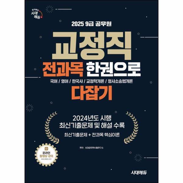 『2025 시대에듀 9급 공무원 교정직 전과목 한권으로 다잡기』는 9급 공무원 교정직 채용시험에 대비하기 위한 교재로 교정직 시험과목인 국어, 영어, 한국사, 교정학개론, 형사소송법개론을 짧은 기간에 반복·숙달할 수 있도록 구성된 이론서입니다. 각 과목마다 과목의 특징이 있으며, 이에 맞춘 수험전략이 필요하기 때문에 학습하기에 최적화된 방식으로 구성하였습니다.