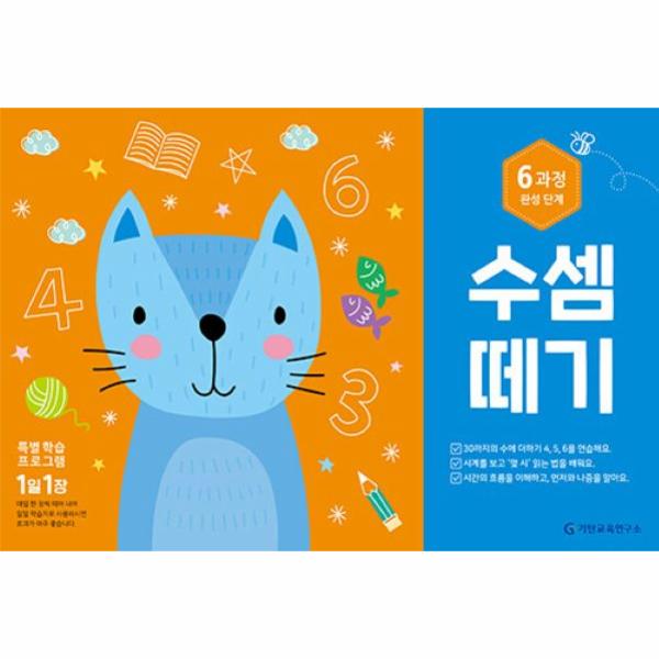 <수셈떼기>는 하루에 한 장씩 규칙적으로 학습하여 한 달에 한 과정을 끝내도록 구성된 일일 학습 프로그램이에요. 매일매일 10~20분이면 충분히 할 수 있는 분량으로, 집중 시간이 짧은 아이들도 걱정 없어요. 그날그날 학습한 날짜를 쓰고 ‘참 잘했어요’ 스티커를 붙이면서 성취감과 자신감도 키울 수 있지요