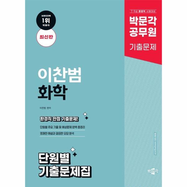 『박문각 공무원 이찬범 화학 기본서(최신판』는 7·9급 환경직 공무원 시험 대비를 위해 이론과 문제를 함께 역은 화학 기본 교재입니다. 방대한 화학 내용을 체계적으로 정리하여 핵심내용을 한눈에 파악할 수 있도록 구성하였고, 단원별 기출문제와 예상문제를 통해 개념을 확실하게 이해할 수 있도록 하였습니다.