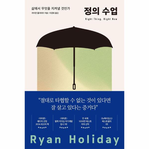 전 세계 40개국 1000만 독자의 사랑을 받은 라이언 홀리데이는 신작 『정의 수업』에서 이 세상에 불의가 만연한 이유를 이렇게 진단한다. 현대인들이 ‘정의’라는 미덕을 우리 자신의 일상과 큰 관련이 없는 것으로 여기기 때문이라고 말이다. 우리는 ‘정의란 무엇인가’를 두고 꼬리에 꼬리를 무는 논쟁에 빠져들거나 혹은 정의를 법정의 판결을 통해 구현되는 가치라 치부하며 삶과 멀리 떨어진 것으로 생각한다. 그렇게 정의가 세상에서 점점 더 찾아보기 힘들어진 지금, 저자는 ‘절대 타협할 수 없는 가치를 지키는 일’이라는 정의의 진정한 가치를 이 책을 통해 다시 되돌려놓는다.