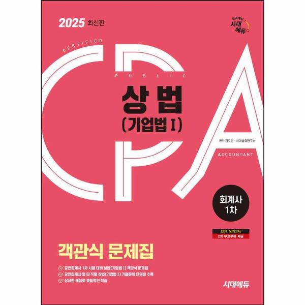 2025 시대에듀 공인회계사 1차 객관식 상법(기업법Ⅰ 도서는 공인회계사 1차 상법(기업법Ⅰ 시험을 대비할 수 있도록 구성한 문제집입니다. 공인회계사 및 세무사, 법무사 기출문제를 단원별로 수록하였으며 법 개정으로 수정이 필요한 문제는 기출문제를 수정하여 정확한 내용을 학습할 수 있도록 하였습니다. 각 지문마다 상세한 해설로 혼자서도 학습이 가능하도록 하였습니다. 2025 시대에듀 공인회계사 시리즈를 통해 합격의 기쁨을 누리시기 바랍니다.