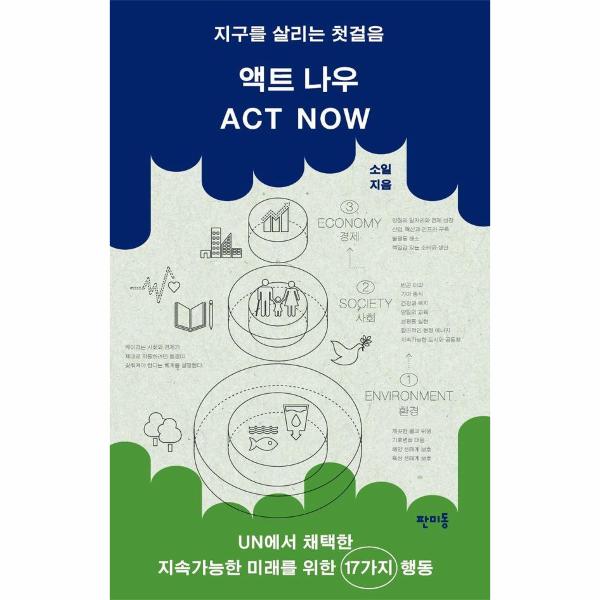 베스트셀러 『제로 웨이스트는 처음인데요』로 ‘쓰레기 없는 삶’에 앞장서 온 소일 작가의 신작 『액트 나우』가 판미동에서 출간되었다. 이 책은 유엔 총회에서 만장일치로 채택된 지속가능발전목표(SDGs를 기반으로 우리가 해결해야 할 환경·사회·경제의 도전 과제를 쉽게 풀어낸다. 빈곤 타파, 생태계 보호와 같이 추상적으로 느껴지는 과제들은 작가의 일상에서 저탄소 밥상, 탄소 가계부, 소비 디톡스 등의 소소한 실천을 통해 구체화되고, 전 지구적 목표는 어느새 우리의 평범한 생활 속으로 깊숙이 스며든다.
