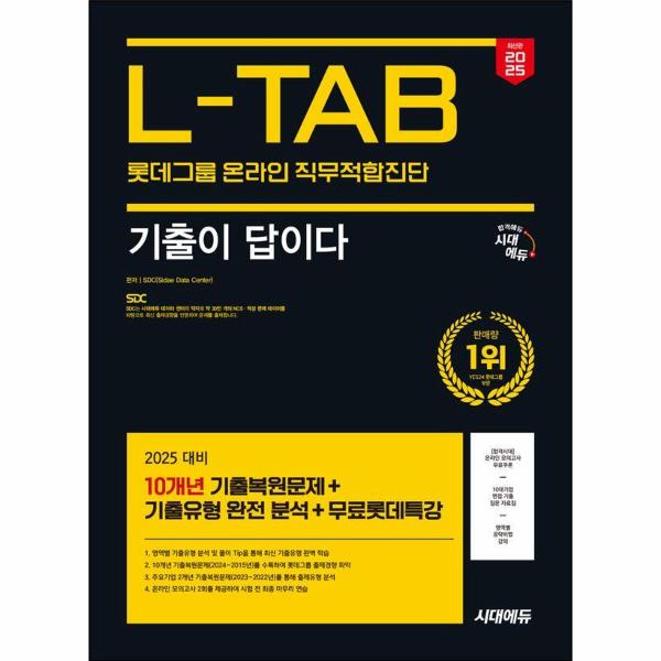 롯데그룹은 적극적으로 세계 시장을 개척하여 아시아를 선도하는 글로벌 기업의 꿈을 반드시 실현해 나갈 수 있도록 우수인재 확보를 위한 롯데그룹만의 인재 선발방식인 온라인 L-TAB을 실행하고 있다. 이에 시대에듀에서는 롯데그룹 온라인 조직·직무적합진단 L-TAB을 준비하는 수험생들이 시험에 효과적으로 대비할 수 있도록 다음과 같은 특징의 본서를 출간하게 되었다. 첫째, 롯데그룹 온라인 L-TAB의 출제영역별 기출유형 뜯어보기를 수록하여 유형분석 및 풀이 Tip을 학습할 수 있도록 하였다. 둘째, 2024 ~ 2015년 시행된 10개년 기출복원문제를 수록하여 롯데그룹만의 출제경향을 한눈에 파악할 수 있도록 하였다. 마지막으로 2023 ~ 2022년 2개년 주요기업 기출복원문제를 수록하여 적성검사 최신 출제경향을 분석할 수 있도록 하였다.