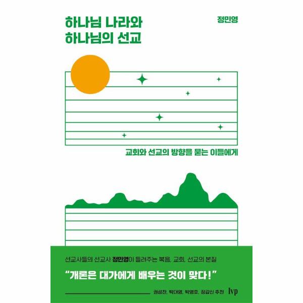 국제적으로 신망받는 선교 지도자 정민영이 십여 년 만에 선보이는 단독 저서! 급변하는 시대 가운데 ‘하나님 나라와 하나님의 선교’에 관한 개념을 성경적, 신학적으로 정립하고 전망을 모색한다. 인도네시아 성경번역 선교사 출신으로 국제위클리프 부총재를 역임, 은퇴 후 선교 동원가로 활발하게 활동하고 있는 저자가 평신도 눈높이에 맞추어 일생의 선교 신학과 선교 경험을 총망라하여 선보이는 역작이라 할 수 있다. “세계 선교라는 거대 물결의 자그마한 지류를 한시적으로 경험한 평범한 그리스도인의 시각으로 그간 배우고 깨달은 바의 일부를 정리해 본 것”이라는 저자의 어조는 겸손하지만 한국 교회의 폐부를 찌르는 통찰로 가득하다.