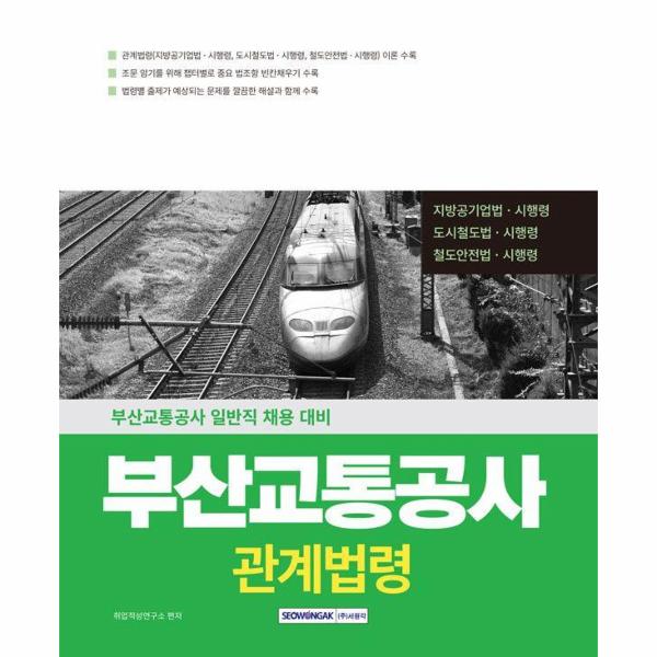 부산교통공사에서는 2025년부터 기존의 필기시험 과목인 직업기초능력평가와 직무능력평가에 더해 전 직렬 공통으로 관계법령을 추가하였다. 이에 본서는 각 법령별 핵심이론과 예상문제를 충분히 수록하였고, 법조항 빈칸채우기도 수록하였다. 그리고 매 문제마다 상세한 해설을 달아 효율적인 학습을 완성할 수 있도록 하였다.