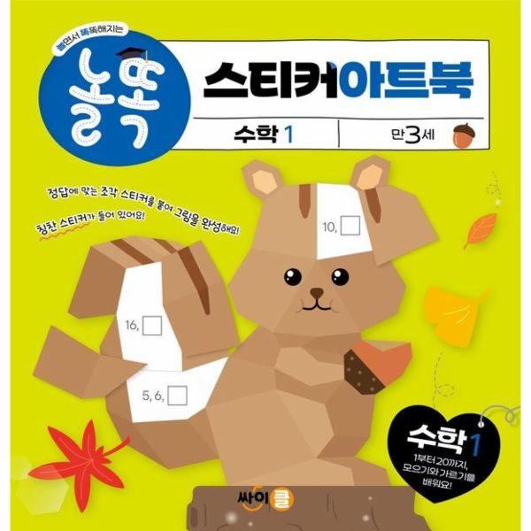 《놀똑 스티커 아트북-수학1》은 만 3세 아이가 배우기 시작하는 수 1부터 20까지와 덧셈ㆍ뺄셈의 기초가 되는 모으기, 가르기를 배울 수 있어요. 왼쪽 페이지에 있는 연습 문제를 푼 다음 오른쪽 페이지 바탕지에 있는 문제를 풀고 답을 적어요. 정답에 맞는 스티커를 붙이면 탐구 주제인 봄, 여름, 가을, 겨울에 맞는 그림이 완성되지요.