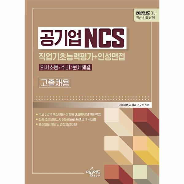 공기업 고졸 채용 대비를 위해 수험생들에게 실질적인 도움을 주고자 출제 경향을 완벽하게 분석·적용한 예문에듀 ‘2025 공기업 고졸채용 NCS 직업기초능력평가(의사소통능력/수리능력/문제해결능력+인성면접’ 도서가 출간되었습니다. 본 도서는 의사소통/수리/문제해결능력의 핵심·빈출 내용을 담아 기초부터 실전까지 한권으로 완성할 수 있습니다. 또한, 학습 전 과목별 학습전략을 통해 학습 방향을 설정할 수 있습니다.