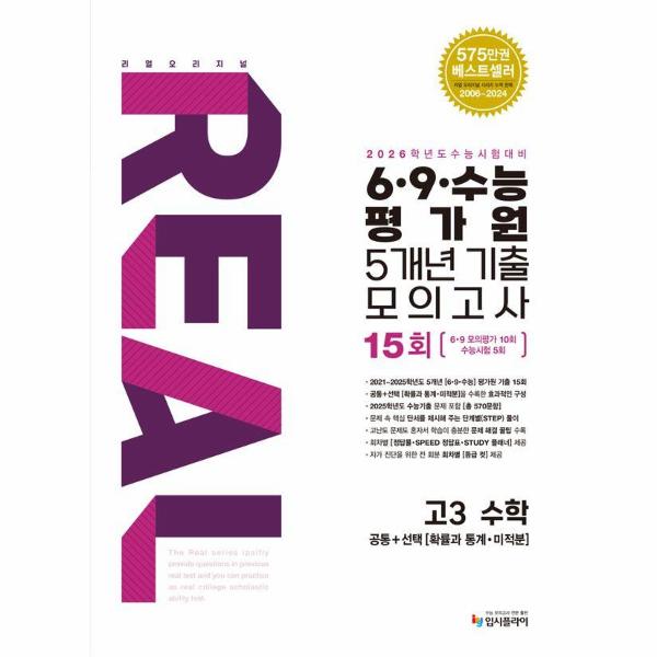 2025학년도 수능 문제를 포함해 최신 5개년 [6, 9, 수능] 평가원 기출문제를 총 15회 수록했습니다. 수학 영역 [공통+선택(확률과 통계, 미적분] 과목만을 수록해 부담 없이 효율적인 학습이 가능합니다.