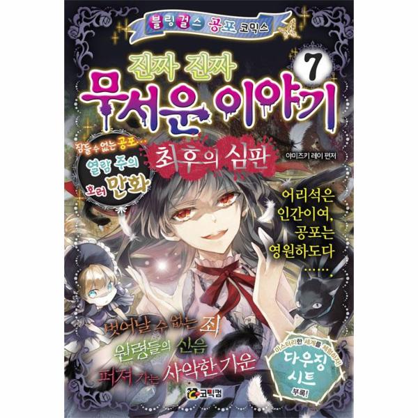 <진짜 진짜 무서운 이야기⑦>에 실린 단편 만화들은 다양한 공포의 감정선을 자극합니다. ‘절규’ 카테고리의 만화는 단 4, 5쪽의 짧은 호흡으로 말미에 충격적인 존재들이 갑자기 튀어나와 식은땀이 쫙 흐릅니다. ‘감동’ 카테고리는 무섭기만 한 게 아니라 마음이 따뜻해지는 이야기죠. ‘오싹’은 다 읽은 후에 불현듯 섬뜩해지는 이야기입니다. 단편 만화에서 선보이는 여러 가지 공포의 조합, 어린이 독자들이 직접 체험한, 혹은 직접 쓴 공포 이야기 그리고 심령사진으로 오싹한 재미를 느껴 보세요.