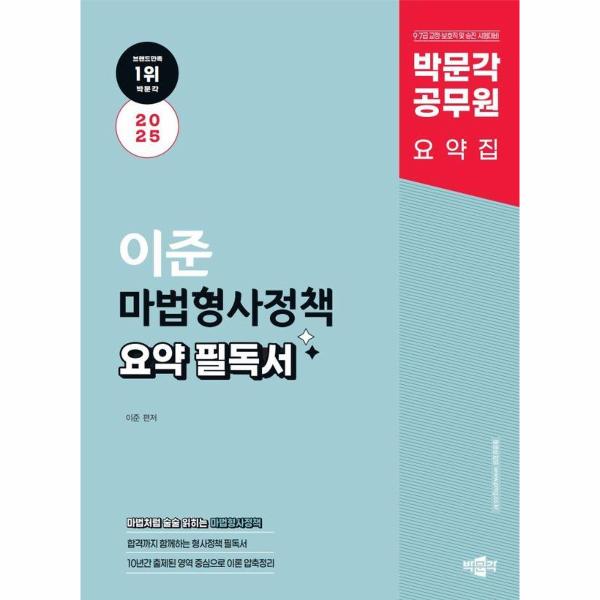 「2025 박문각 공무원 이준 마법형사정책 요약 필독서」가 수험생 여러분의 합격에 큰 도움이 되기를 바랍니다.