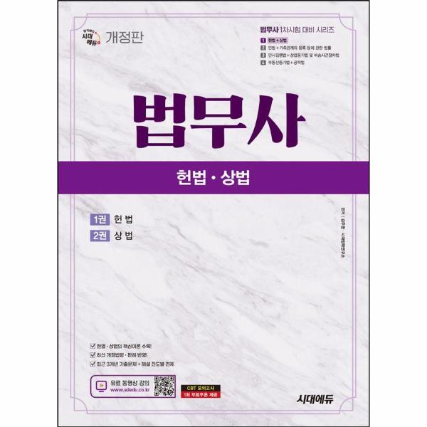 「시대에듀 법무사 1차 헌법·상법」은 법무사시험을 준비하는 수험생들에게 가장 확실한 합격의 길을 제시하기 위한 수험서로, 단 한 과목도 소홀히 할 수 없는 수험생 여러분을 위하여 최신 출제경향과 학계동향을 반영한 핵심이론과, 주요 기출문제 및 상세해설을 한 권에 모두 수록하여 효율적인 시험준비에 도움이 되고자 하였습니다.