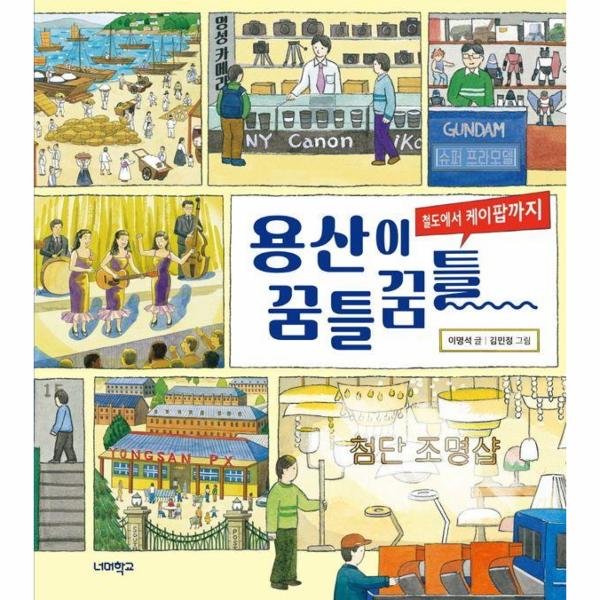 우리나라 최초의 기차역과 첫 대단지 아파트가 세워진 곳, 외국 대사관이 가장 많이 있는 곳은? 바로 용산이다. 『철도에서 케이팝까지 용산이 꿈틀꿈틀』은 외국 군대가 오래 주둔했으나 케이팝이 태어나고 자란 곳, 세계 문화가 공존하며 새로움을 만들어 낸 용산의 역사를 따스하고도 생생한 그림, 명쾌하고 리듬감 있는 글로 보여 주는 그림책이다.