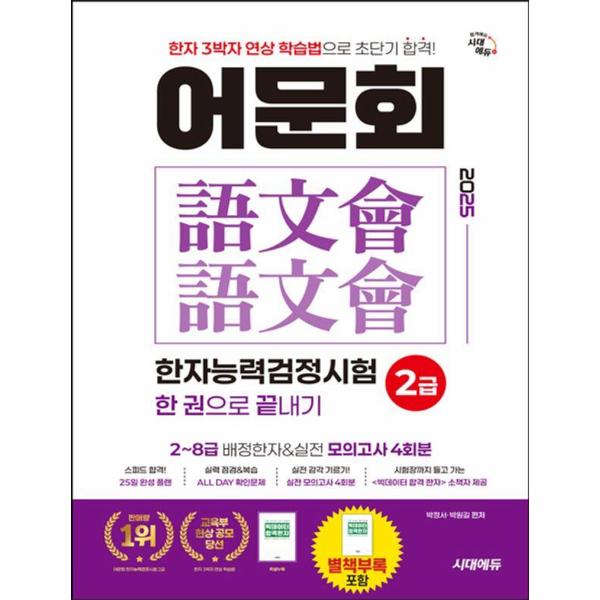 본서는 사단법인 한국어문회에서 주관하는 ‘한자능력검정시험 2급’에 대비할 수 있는 교재로서, 교육부 현상 공모에 당선된 박정서·박원길 저자의 ‘한자 3박자 연상 학습법’을 통해 어문회 한자능력검정시험 2급 배정한자를 쉽고 빠르게 암기하여 단기간에 합격할 수 있도록 구성되었습니다. 시험에 꼭 출제되는 고사성어, 반대어·상대어 등 유형별 한자를 전부 수록하였으며, 실전 모의고사 4회분이 함께 수록되어 있어 2급 배정한자 학습 후 모의고사를 풀어 보며 출제 유형을 파악하고 실전 감각을 기를 수 있도록 하였습니다. 특별 부록으로 제공되는 ‘빅데이터 합격 한자’는 빅데이터를 기반으로 뽑아낸 기출 한자 500자와 한자어 300개, 사자성어 100개로, 휴대하기 편한 소책자로 제작하여 일상에서의 학습과 시험장에서의 마무리 복습까지 할 수 있도록 구성되었습니다. 한자능력검정시험 2급 배정한자 어원 풀이부터 모의고사 풀이까지, 단 한 권으로 어문회 한자능력검정시험 2급에 완벽하게 대비할 수 있도록 하였습니다.