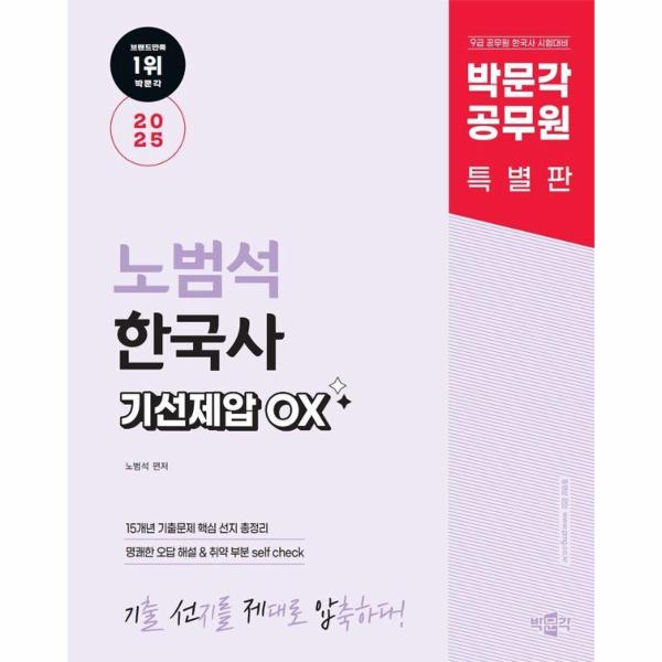 <2025 박문각 공무원 노범석 한국사 기선제압 OX>를 통해 실력을 점검하여 수험생 여러분들의 노력이 최대의 결과로 빛을 발하기를 기원합니다.