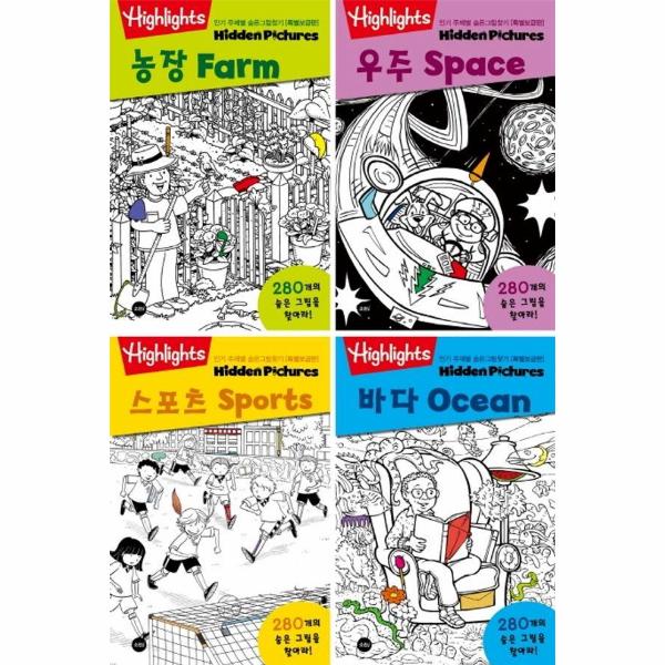 전 세계 부모들이 선택하고, 아이들이 즐거워하는 선호도 높은 주제만을 선별하여 만든 《인기 주제별 숨은그림찾기 특별보급판》 세트는 70년 전통을 이어온 아동서 출판의 선두주자 하이라이츠(Highlights가 특별히 선별하여 “인기 주제별 ”로 ‘즐겁게 재능 계발하기’용으로 출간한 어린이· 아동서이다. 기발하고 다양한 공룡· 동물 캐릭터들이 등장하고 자신과 별반 다르지 않은 친구들의 다채로운 모습이 담긴 장면 속을 탐색하며 숨은 그림을 찾는 동안 아이들의 시각적인 인지능력과 창의적인 사고능력이 향상될 뿐만 아니라 자기 주도적 학습법의 중요 요소인 집중력과 관찰력을 키우게 된다. 또한 물건마다 한글이름과 영문이름을 같이 표기하여 책을 읽기 시작한 아이들과 영어를 배우기 시작한 아이들의 어휘력과 언어 인지능력을 끌어올려 줄 것이다. 같은 사물이 장면마다 변화된 다양한 모습으로 등장하여 280개의 물건의 한글낱말과 영어단어의 반복학습을 가능하게 한다.