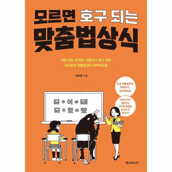 최근 한 결혼정보회사가 미혼남녀를 대상으로 실시한 조사에 따르면 30%가 넘는 응답자가 ‘맞춤법을 반복적으로 틀릴 때’ 연인에게 가장 정떨어지는 순간이라고 답했다고 한다. 주로 틀리는 맞춤법은 ‘되’와 ‘돼’, ‘나아’와 ‘낳아’ 그리고 ‘연예인’과 ‘연애인’ 등이 꼽혔다. 기업의 인사 담당자들이 지원자의 자소서에서 발견되는 맞춤법 실수에 예민하다는 건 익히 알려진 사실이고 그럴 만하다고 생각하지만, 연애에서까지 민감한 문제라는 점은 다소 의외로 느껴질 수 있을 것이다. 그러나 사소해 보였던 것은 오히려 매우 기본적인 ‘교양’이어서 그랬던 것이 아닐까? 직원을 채용할 때든 연애 관계에서든 기본을 지키지 못하는 사람과는 인연을 이어나가고 싶지 않은 것이 인지상정이다. 맞춤법 역시 그러한 교양 지식 중 하나다. 그러나 한국어 맞춤법은 그야말로 몰라도 물어보기 창피한 분야인 것도 사실. 잘 모르겠는데 남에게 직접 묻기도 민망하고 인터넷 검색은 못 미더울 때, 책꽂이에 이런 책 한 권 정도 있으면 요긴하게 쓰이지 않을까. 누적 판매 10만 부에 육박하는 <모르면 호구 되는 상식 시리즈>가 맞춤법상식도 다룬다. 모르면 정말 없어 보이는 맞춤법상식, 『모르면 호구 되는 맞춤법상식』의 저자 이윤영 작가가 하나씩 상세하게 풀어서 전달한다.