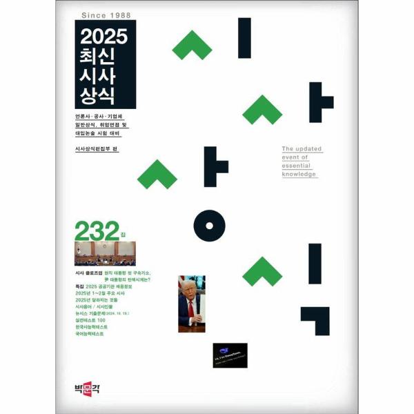 <232집 최신시사상식>은 2025년 1~2월까지 약 2달간 국내외에서 일어났던 최신시사 중 꼭 알아둬야 할 중요 뉴스만을 선별 정리함으로써, 넘쳐나는 정보 속에서 학습의 우선순위를 고민하는 수험생과 취업준비생은 물론 현 사회의 이슈를 파악하고자 하는 모든 독자들에게 도움이 되도록 구성한 책입니다.