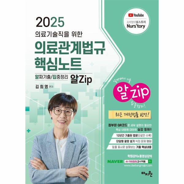 둘째, 목차 구성은 기본이론서「김희영의 의료관계법규」책자와 동일한 순서대로 출제빈도가 높은 21개 법규만으로 구성하여 “알Zip 핵심노트”만으로 부족한 부분은 기본이론서를 참고하도록 정리하였습니다.