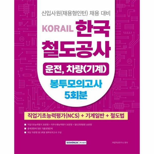 코레일 한국철도공사 운전, 차량(기계직 채용을 대비하기 위한 모의고사로, 기출동형의 5회분으로 구성되었습니다.