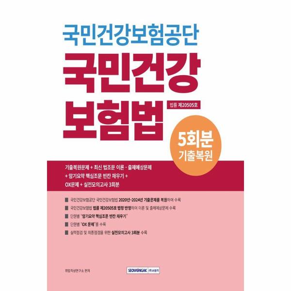 본서는 국민건강보험공단 국민건강보험법 전공과목을 대비하기 위한 문제집으로, ?기출복원문제/최신개정법령을 반영한 법조문 수록 및 출제예상문제/OX 문제/실전모의고사?로 구성되어 있다.