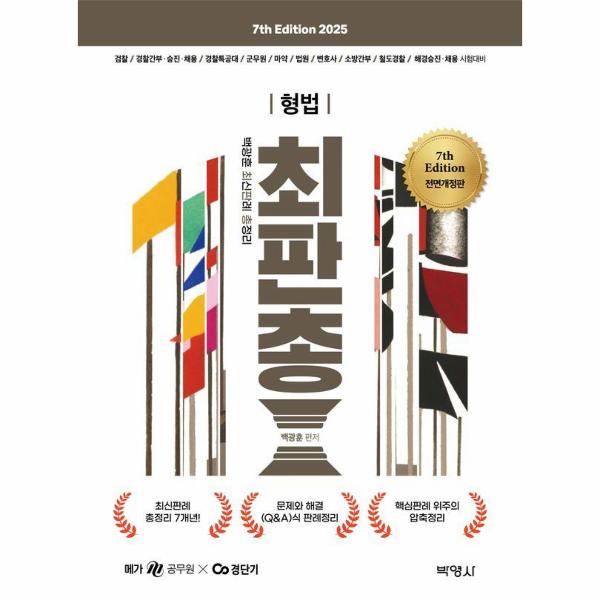 백광훈 최신판례 총정리(최·판·총 형법 2025년판은 앞으로 시행될 각종 시험에 대비하기 위하여 2020년 1월부터 2024년 10월 31일까지 판시된 최근 5년간의 형법분야의 판례들을 정리한 최신판례집이다.