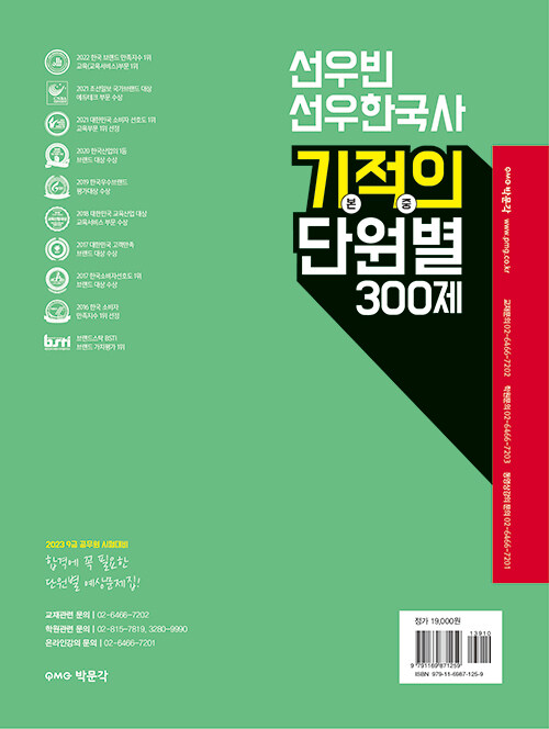 2023 선우빈 선우한국사 기적의 단원별 3...